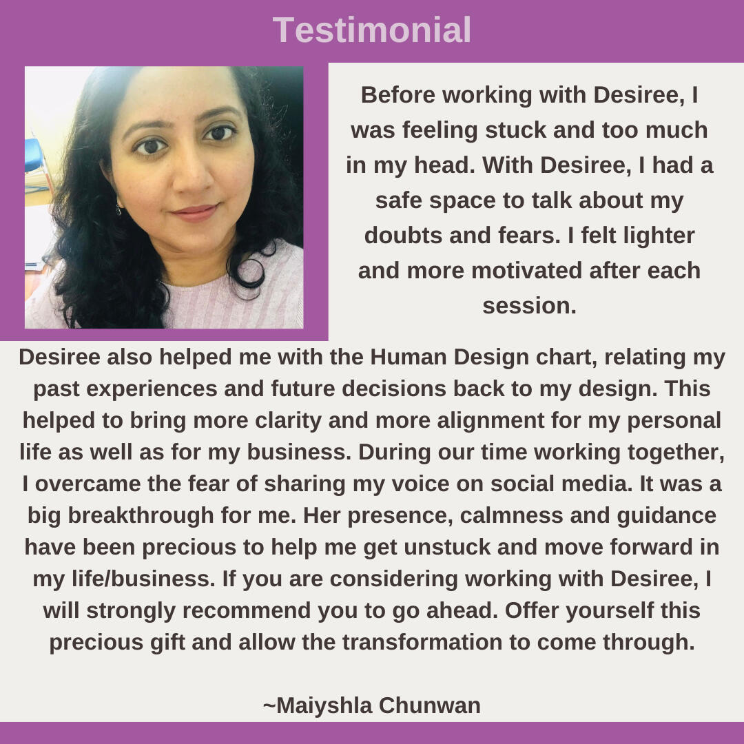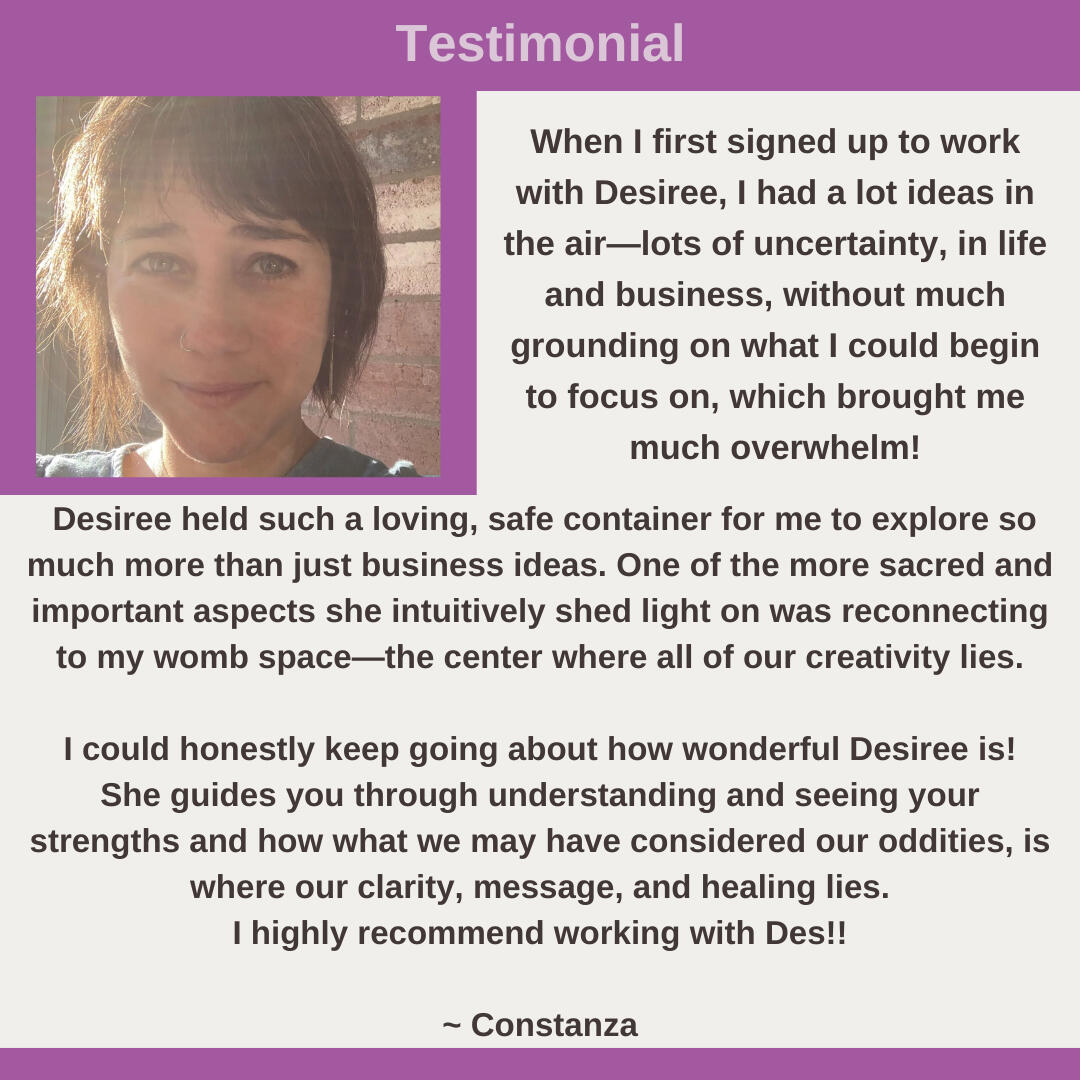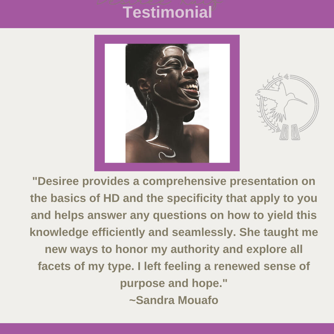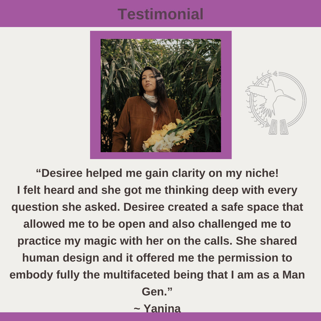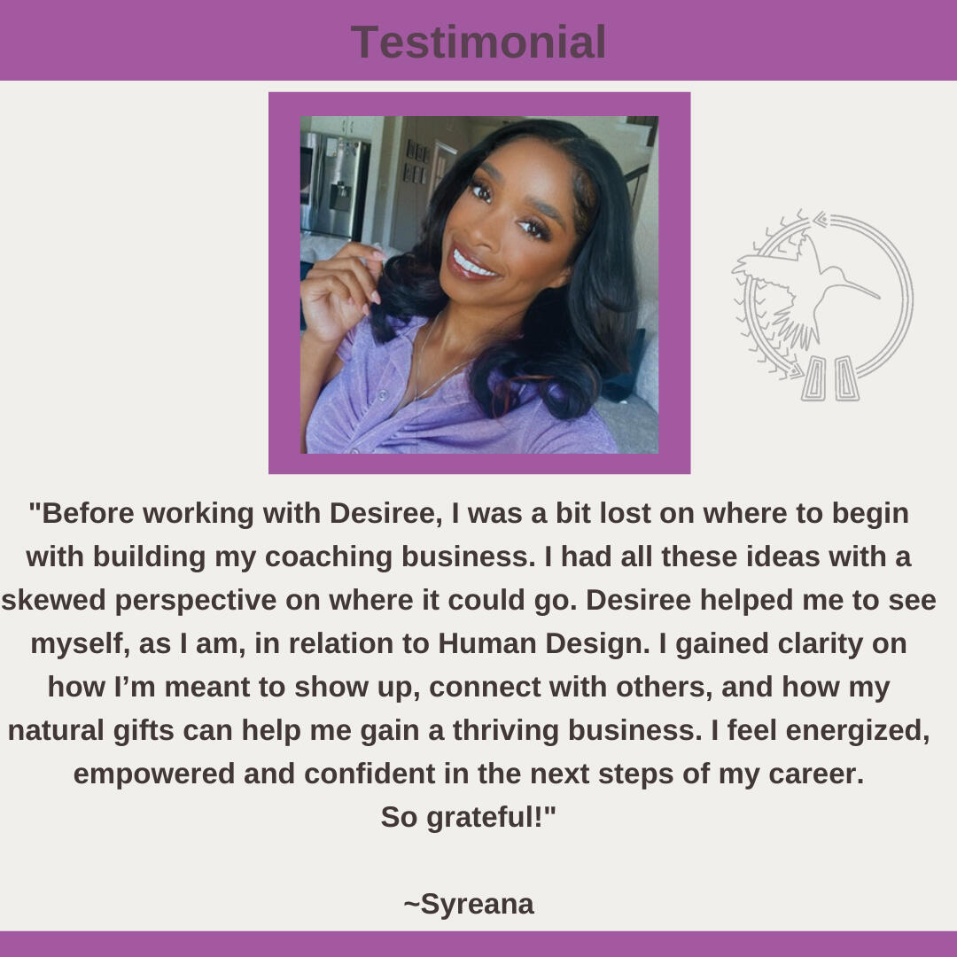 Hi! I’m Desiree!I’m a Holistic Life Coach for parents and entrepreneurs. My titles include (but are not limited to): Certified Spiritual Life and Purpose Coach, Human Design Teacher, Decolonizing Mama, Community Organizer, … and Forever Learner.